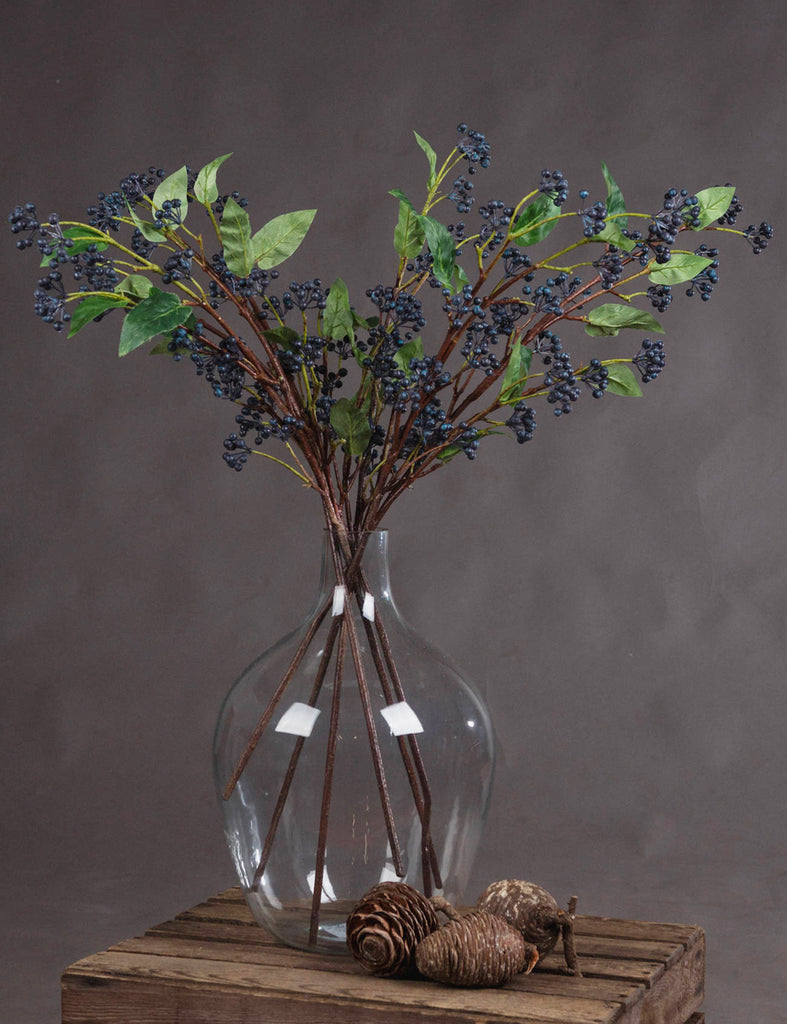 These artificial Autumn berry stems with a dark blue toned berries and natural look stems, are a versatile seasonal update for your home. Easy to bend to your desired look in a vase of your choice or use with a mix of foliages and other faux flowers to create a seasonal Autumn bouquet.